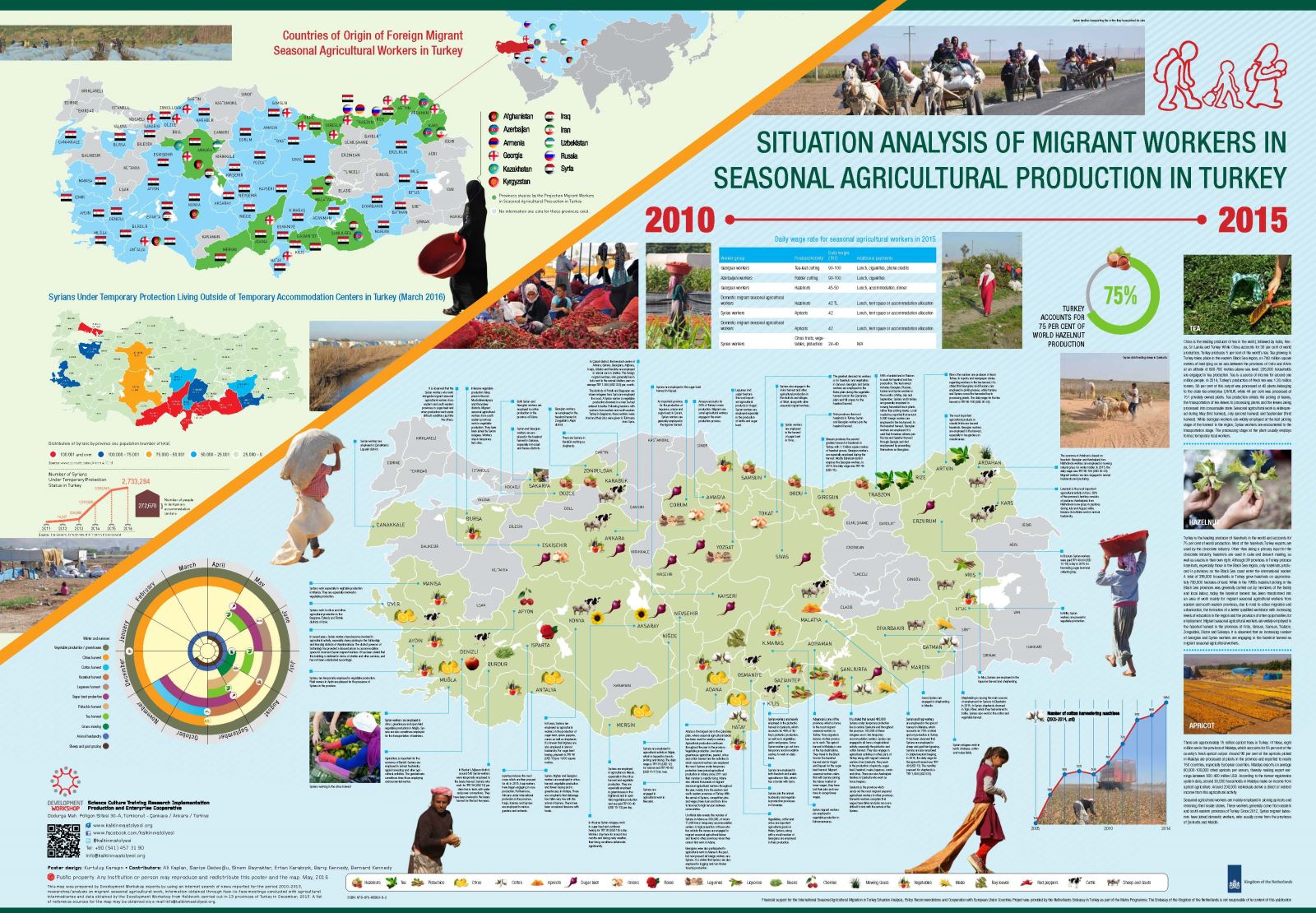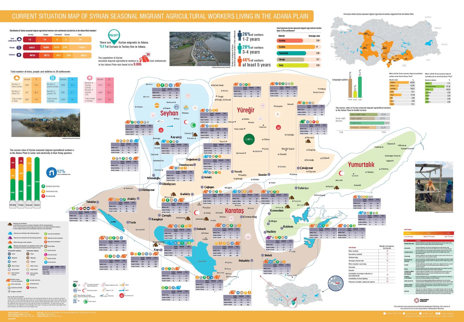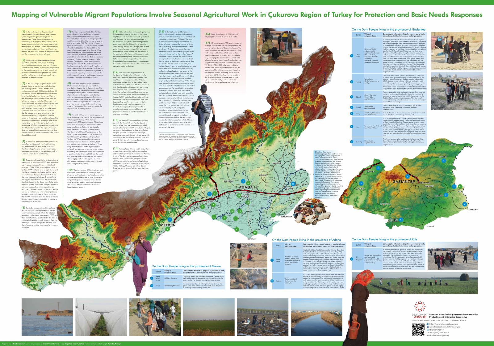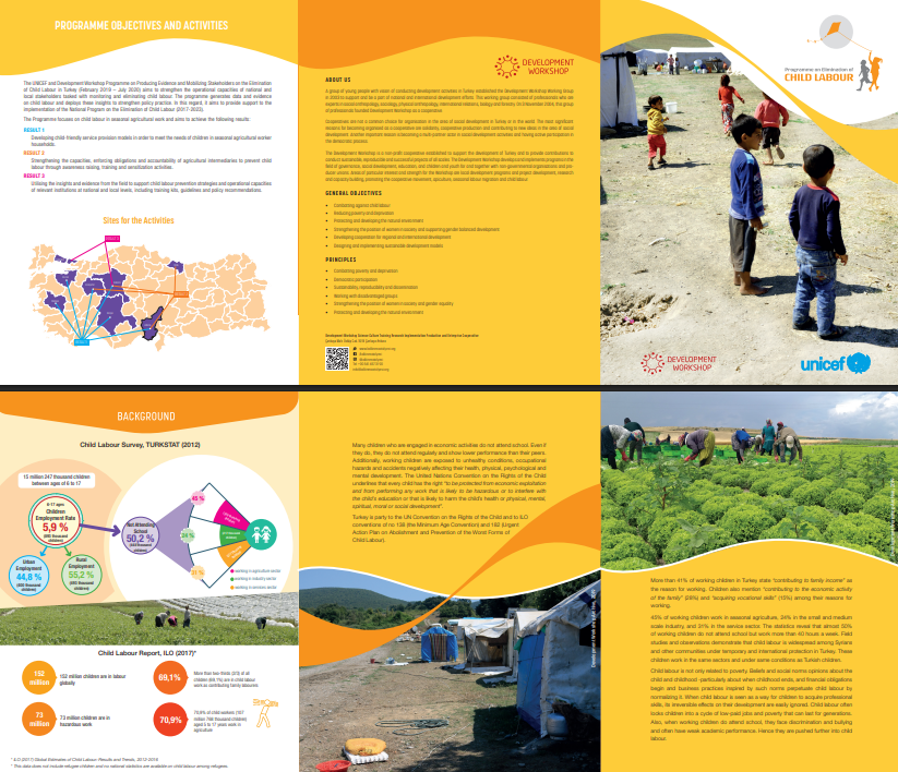 Bursa İli Mevsimlik Tarımsal Üretimde Çocuk İşçiliği Mevcut Durum Raporu ve Uygulama Programı dört ana bölümden oluşmaktadır. Birinci bölümde, Bursa ilinde mevsimlik tarımsal üretim faaliyetlerinde çalışan mevsimlik gezici tarım işçisi haneler ve onların çalışan veya çalışmayan çocuklarını odak alan program, proje, araştırma veya faaliyetler hakkındaki bilgi, haber ve belgeler bir tarihsel akış şemasına yerleştirilmiş; bu şemadan yararlanarak kurum veya kuruluşların proje ve programları nasıl uyguladıklarını anlamak ve ileriye dönük planlanacak olan uygulamalar için ders çıkarmak amaçlanmıştır. İkinci bölümde ise, söz konusu haneler ve onların çalışan veya çalışmayan çocuklarına yönelik eğitim, sağlık, çocuk koruma, yaşam ve çalışma ortamının iyileştirilmesi amacıyla doğrudan hizmet veren, faaliyet uygulayan, araştırma, izleme, değerlendirme, model geliştirme ve savunu yapan kurum ve kuruluşların, yasalar ve kurumun kendisine ait yönetmelik, tüzük, ana sözleşme, vakıf senedi gibi bağlayıcı belgelerinden hareketle, rol ve sorumluluğu bulunan aktörler haritalandırılmıştır. Bu aktörlerin ilgili bağlamda yürüttükleri çalışmalar ve çalışmaların hedef kitle üzerindeki etkisi hakkında detaylı bilgiye sahip olunmuş, aktörlerin birbirlerine temasının hangi düzeyde ve ne durumda olduğu görülmüştür. Üçüncü bölüm, mevsimlik gezici tarım işçisi ailelerin konakladıkları geçici çadır yerleşimlerinde yaşayanlara ilişkin bilgiler içermektedir. Ailelere ait demografik verileri toplamak, yerleşim yerlerinin eğitim ve sağlık kurumlarına, il ve ilçe merkezlerine, en yakın mahallelere uzaklıklarını, yerleşim yerlerindeki altyapı ihtiyaçlarını, temel hizmetlere erişimin hangi ölçüde olduğunu ve yerleşimlerde özellikle çocukların karşılaşma ihtimali olan riskleri belirlemek amacıyla tespit ve gözlem yapılmıştır. Bu kapsamda altı ilde Çocuk İşçiliği ile Mücadele Birimi personeli ve Kalkınma Atölyesi saha uzmanları 2019 yılının Haziran ve Kasım ayları arasında mevcut durum tespiti için saha çalışması gerçekleştirmiştir. Üçüncü bölüm, bu saha çalışması bulgularını ve temel analizleri içermektedir. Son bölüm ise, tüm bu çalışmalardan elde edilen veriler, bilgi ve analizler ışığında 2021- 2024 yılları arasında mevsimlik gezici tarım işçisi haneler ve bu hanelerdeki çocuklara yönelik eğitim, sağlık, çocuk koruma, yaşam ve çalışma ortamı temalarında hazırlanan ve Adana, Ankara, Bursa, Eskişehir, Konya, Manisa illerinde uygulanacak olan Uygulama Programı’nın genel hatlarını içermektedir. Her bölümde öncelikle yapılan çalışmanın amaçları, içeriği ve kapsamı ile çalışma süresince kullanılan yöntem ve araçlar kısaca açıklanmakta; ardından genel değerlendirme ve bulgular paylaşılmaktadır. Raporda kullanılan tanımlar ve kavramlar ile çalışmalarda kullanılan bazı araçlar ile detaylı bazı açıklamalar ek olarak sunulmuştur.