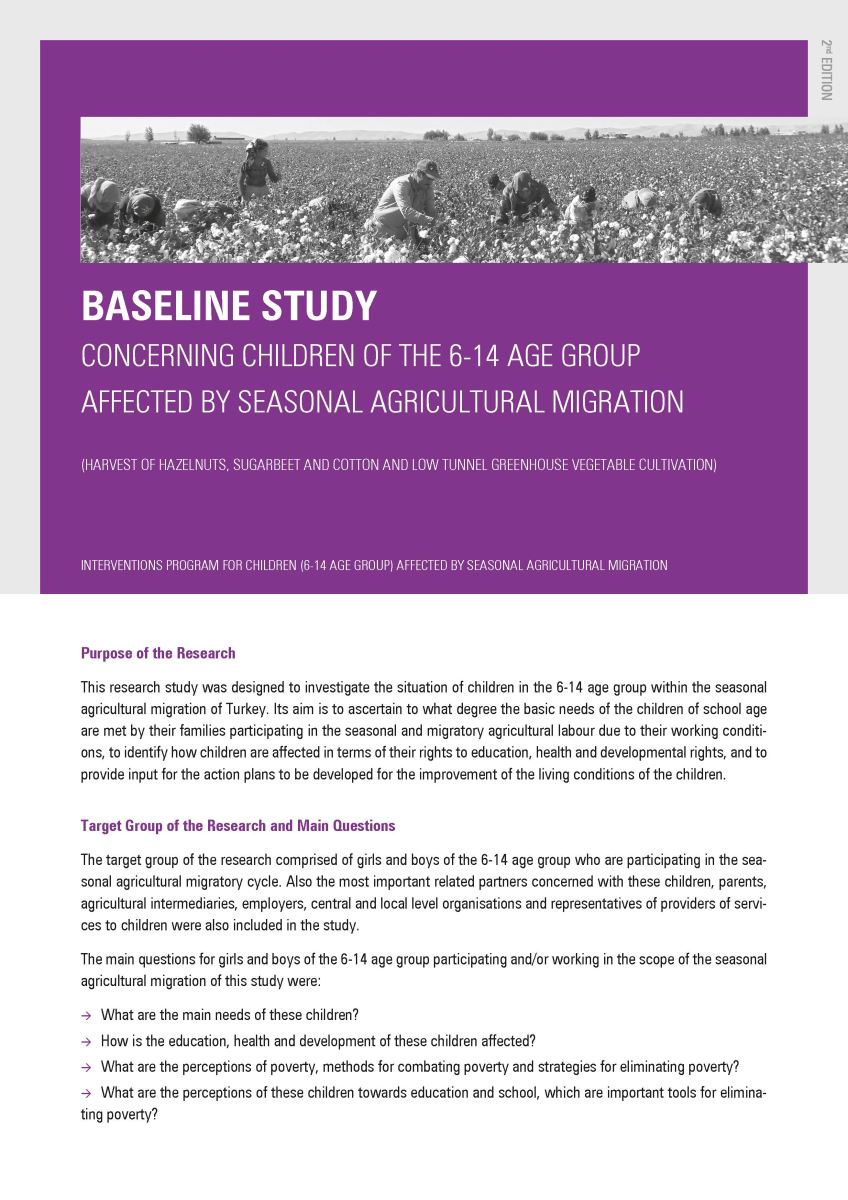 Mevsimlik Tarımsal Üretimde Çocuk İşçiliği Mevcut Durum Raporu ve Uygulama Programı BURSA
